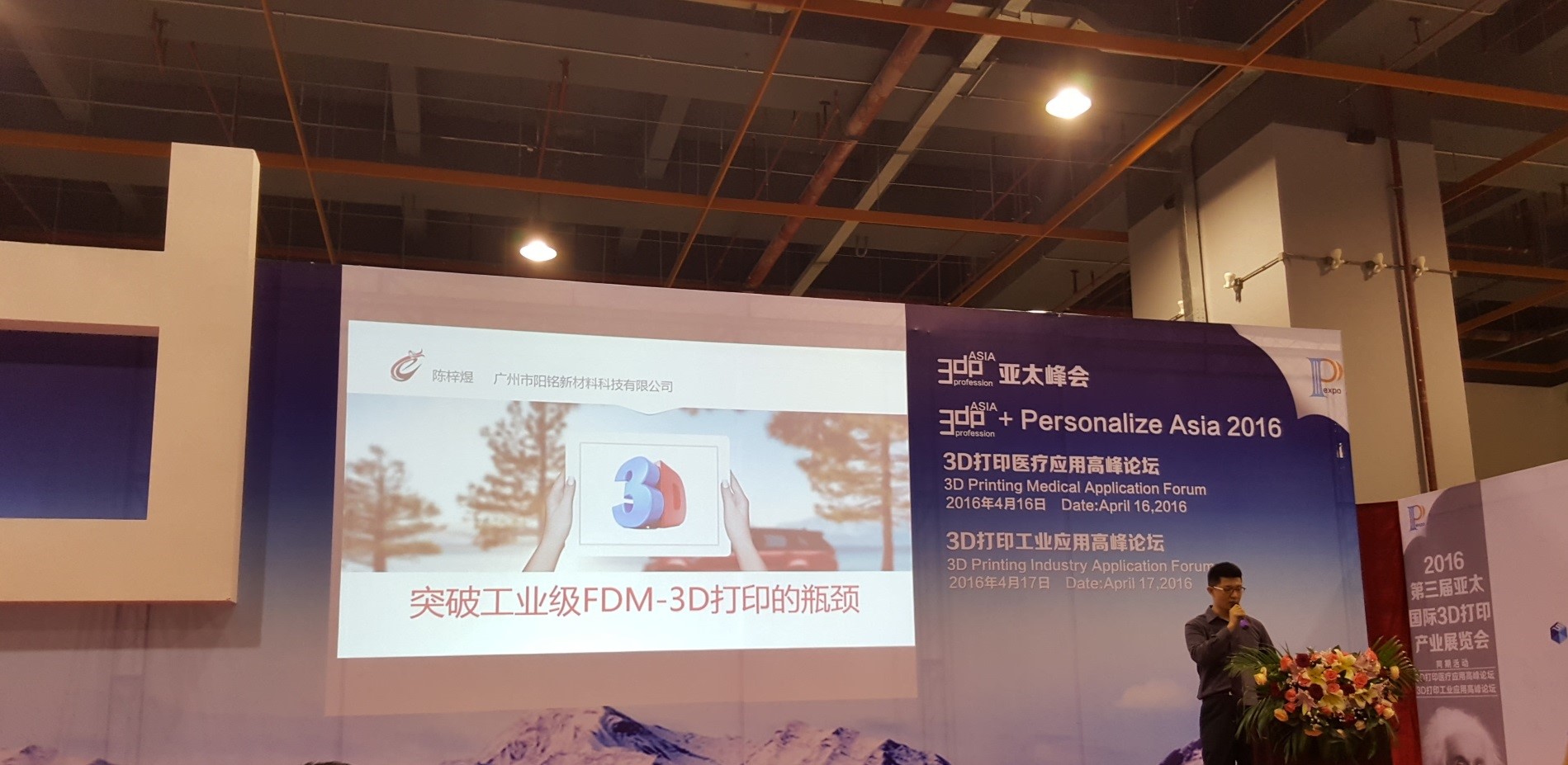 4月16日下午三點,在會場新品發布會場,公司技術總監陳梓煜博士發布了最新的工業級3D打印FDM設備—獅子座(Leo)和工業級FDM復合材料—PC線材成功推出市場。